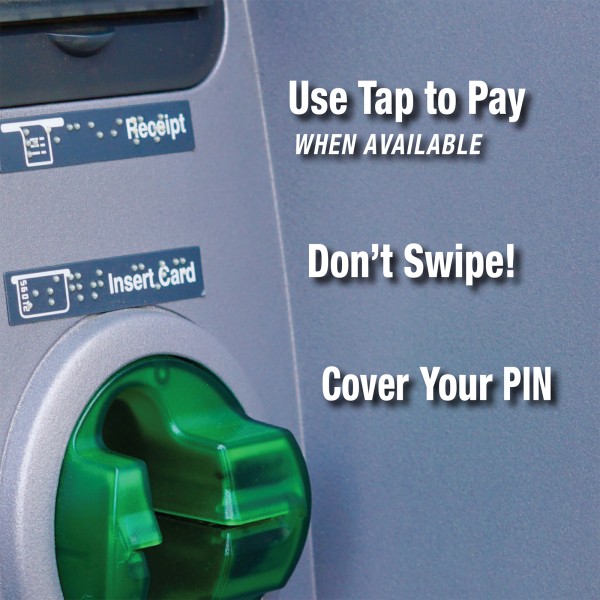Detecting skimmers, devices designed to illegally capture credit or debit card information, requires a watchful eye when using card readers at ATM’s, gas stations or other retailers. Before inserting your card, inspect the card reader for any unusual attachments, loose parts, or mismatched colors. Give the card reader a slight tug to ensure it is securely attached and not a discreet overlay. Additionally, cover the keypad when entering your PIN to conceal your entry from hidden cameras. Use ‘Tap to Pay’ when available and nsert cards with chips instead of swiping. Regularly monitor your financial statements for unauthorized transactions, as quick detection is key to minimizing damage from skimming.
